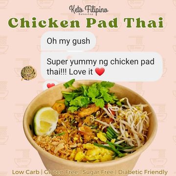 Sweet, salty, sour and a bit spicy. Chicken Pad thai made with shirataki noodles. Cooked fresh every Wednesday and Saturday. 1 bowl serves 1 person. Best if consumed immediately. Can last up to 2 days if kept well in the refrigerator.
